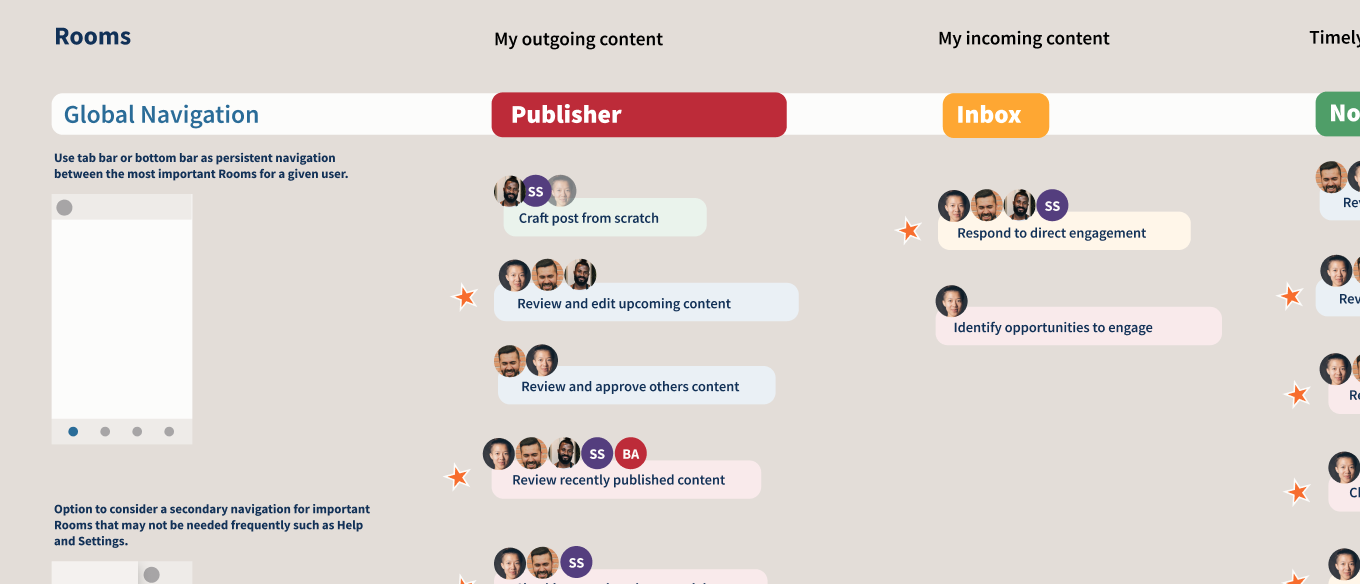 Opportunity areas included creating summary views, clearly showing what’s new or what needs review, and backgrounding the publishing “from scratch” experience on mobile.