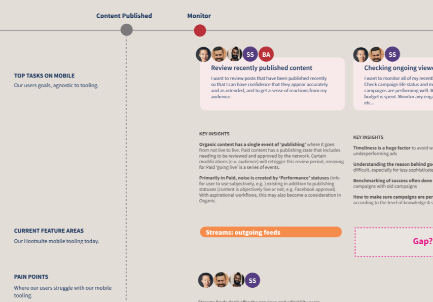 I saw first-hand how powerful generative user research can be to shape (or in Hootsuite’s case, “reshape”) a product. The diagram below is a fairly typical example of a workflow we referenced often when developing the design vision.